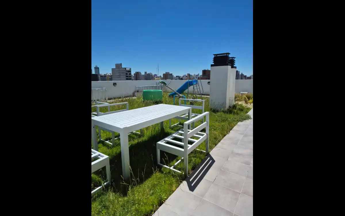 Con cochera, el edificio posee espacio con parrilla al aire libre de uso compartido.