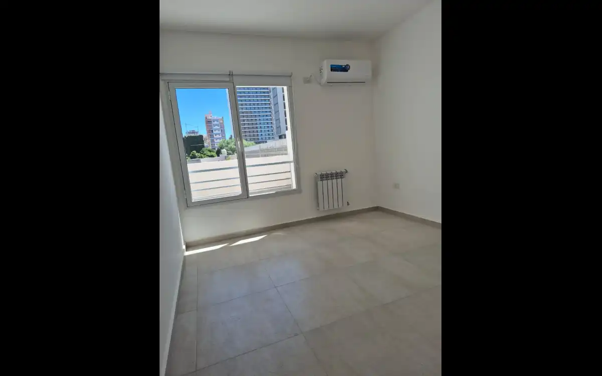 Dpto a estrenar de un dormitorio, baño, cocina comedor, terraza grande, posee dos aires acondicionados, cortinas roller.