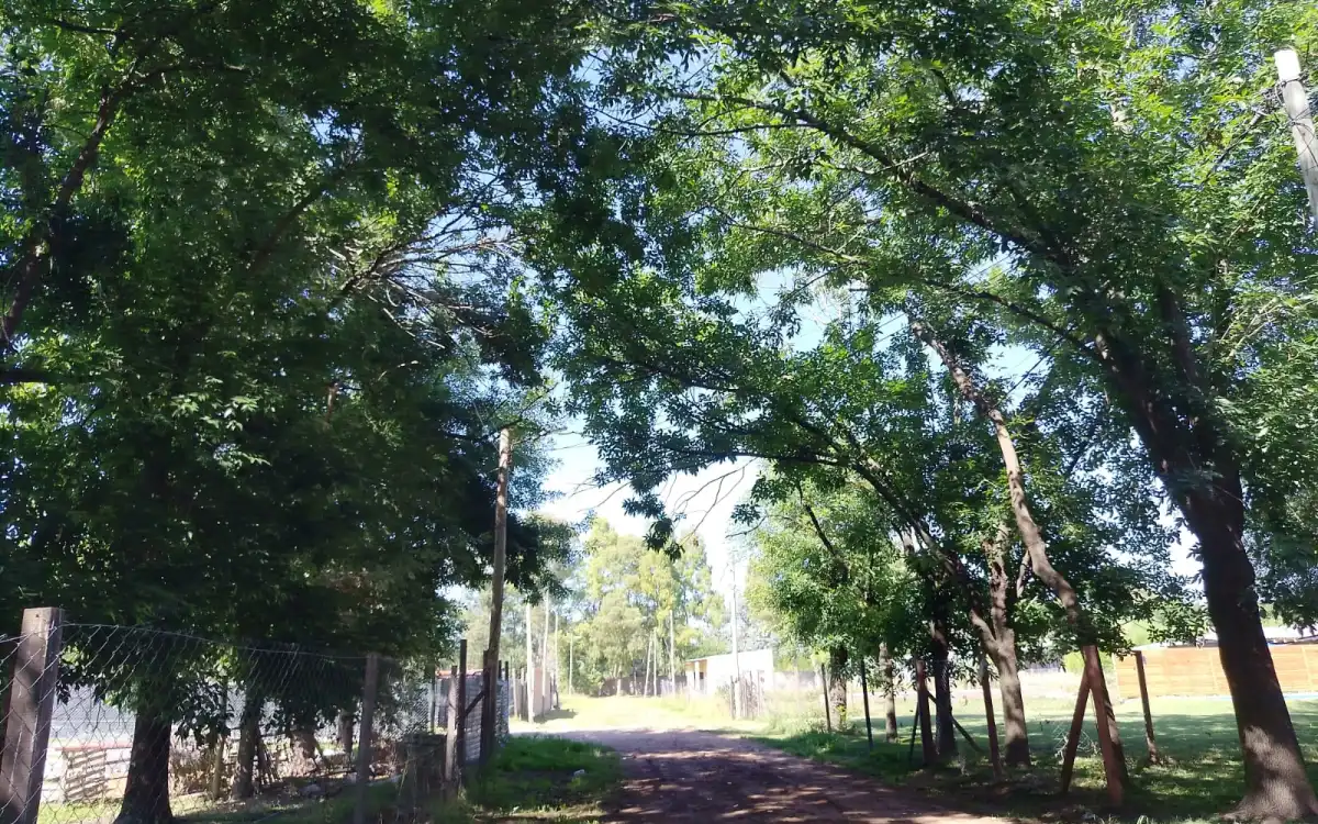 En barrio cerrado, con verde y arboleda.